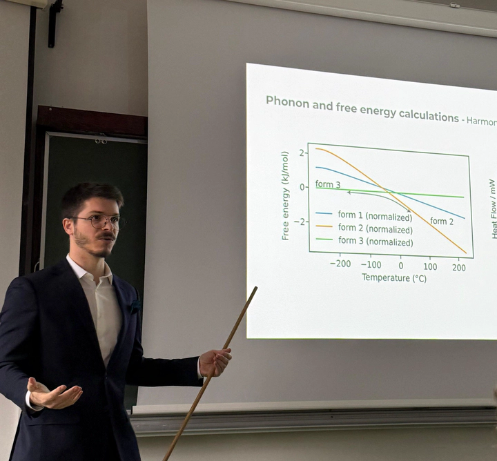 Supervised by Ivor Lončarić, Bruno employed machine-learned interatomic potentials to investigate organic molecular crystals with extreme anisotropic thermal expansion and thermosalient phase transitions, as well as femtosecond laser-induced dynamics of molecules on metallic surfaces.